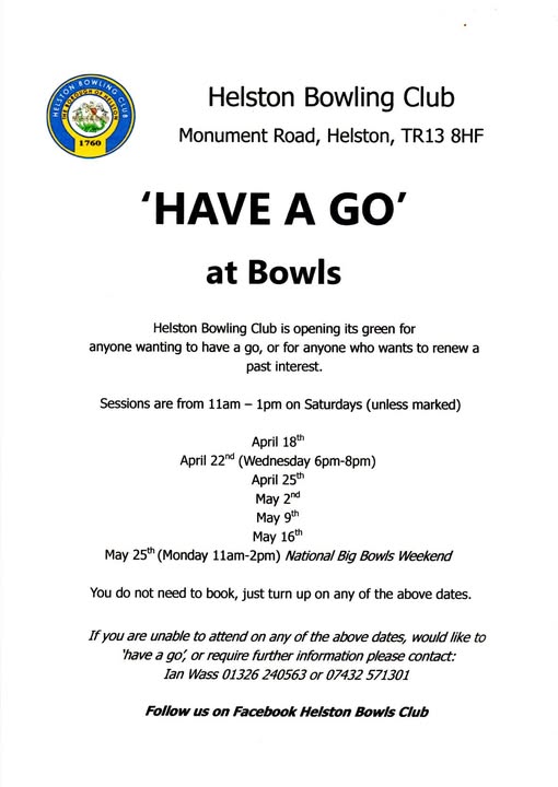 Have a go at Bowls with Helston Bowling Club! Curious about lawn bowls? Come along to one of their “Have a Go” sessions at Helston Bowls Club and give it a try. Whether you’ve never played before... |